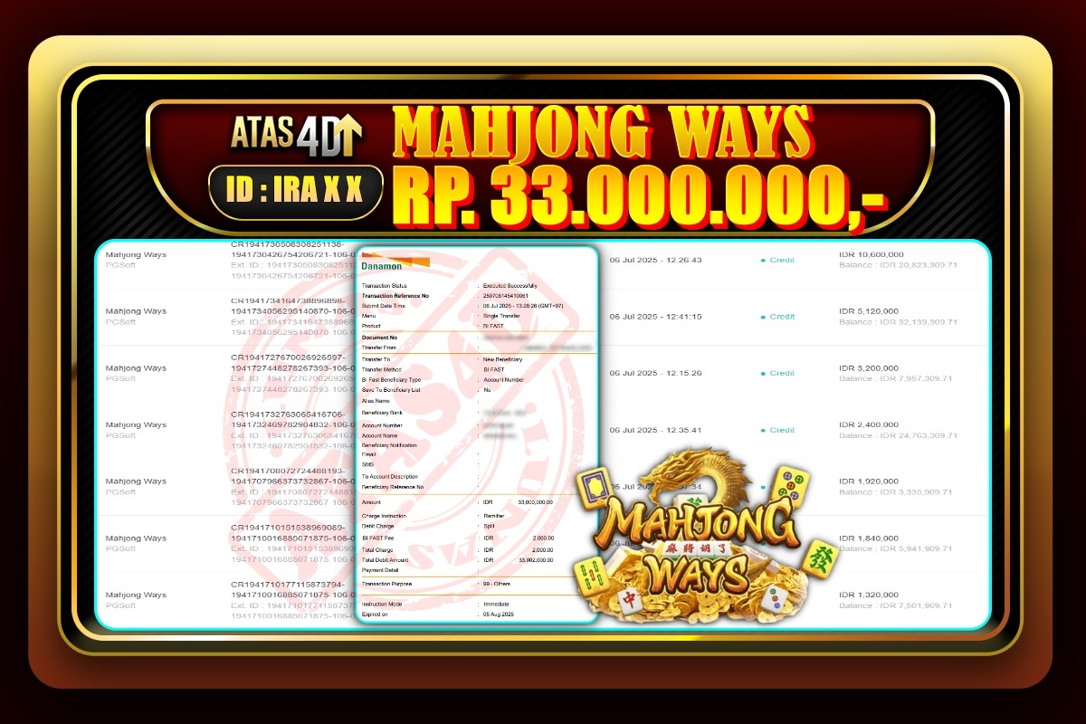 Bukti Jp ATAS4D – Slot Online 06 Juli 2025
