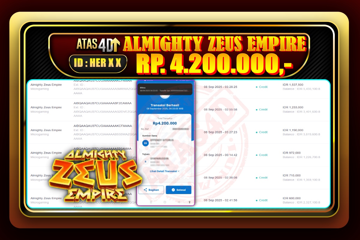 Bukti Jp ATAS4D Slot Online 08 September 2025.
