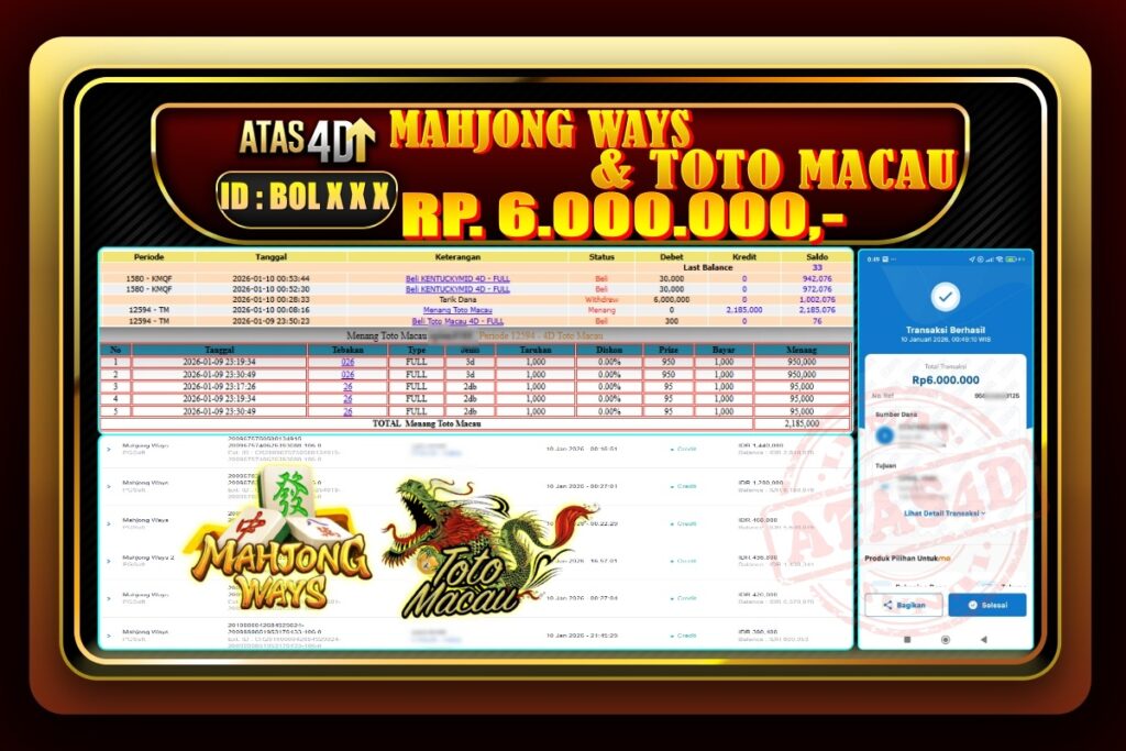 Bukti Jp ATAS4D Slot Online 10 Januari 2026  – ATAS 4D telah menjadi sebuah platform online yang selalu membayar kemenangan pemain.