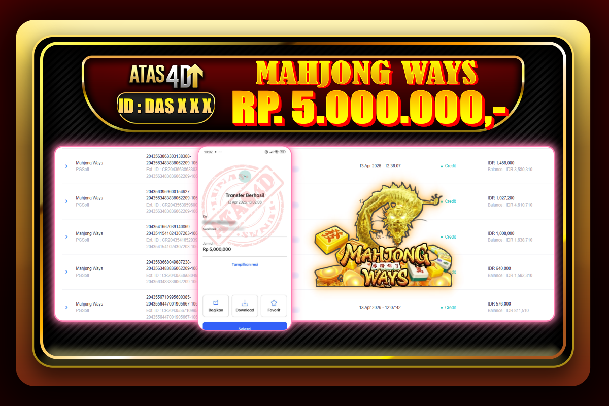Bukti Jp ATAS4D Slot Online 13 April 2026  – ATAS 4D telah menjadi sebuah platform online yang selalu membayar kemenangan pemain.