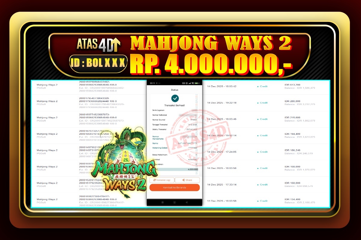 Daya tarik ATAS4D yang menawan telah memikat hati banyak pemain di Indonesia. Platform ini menawarkan pengalaman bermain yang lengkap dengan pilihan pasaran togel terlengkap dan berbagai permainan slot seru yang menghadirkan sensasi tiada duanya. Setiap pemain berkesempatan menikmati momen seru yang memacu adrenalin serta peluang meraih kemenangan yang memuaskan. Dengan antarmuka yang user-friendly dan tampilan yang modern, ATAS 4D membuat sesi bermain semakin menyenangkan dan mudah diakses kapan saja, di mana saja. Tak hanya menyuguhkan permainan menarik, ATAS4D juga memanjakan pemain dengan beragam bonus dan promosi istimewa yang sulit ditemukan di tempat lain. Mulai dari bonus pendaftaran untuk member baru, bonus deposit harian, hingga event dan turnamen spesial yang diadakan secara terus menerus. Semua ini dirancang untuk memberikan keuntungan maksimal bagi para pemain, sekaligus menambah keseruan di setiap permainan. Setiap bonus dan promosi yang ditawarkan membantu meningkatkan peluang kemenangan sehingga para pemain semakin betah dan tertantang untuk terus bermain.Siapakah yang Akan Menjadi Pemenang Selanjutnya?