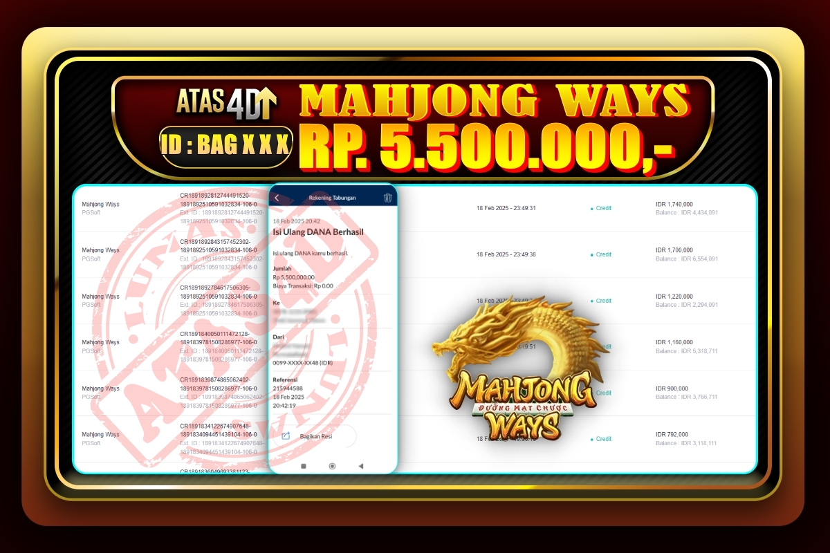 Bukti Jp ATAS4D Slot Online 18 Februari 2025 – ATAS 4D telah menjadi sebuah platform online yang selalu membayar kemenangan pemain.