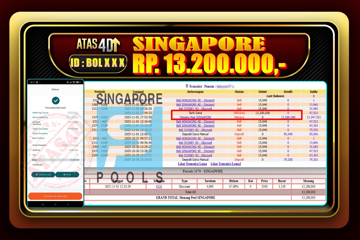 Bukti Jp ATAS4D Togel Online 01 November 2025. – ATAS 4D telah menjadi sebuah platform online yang selalu membayar kemenangan pemain