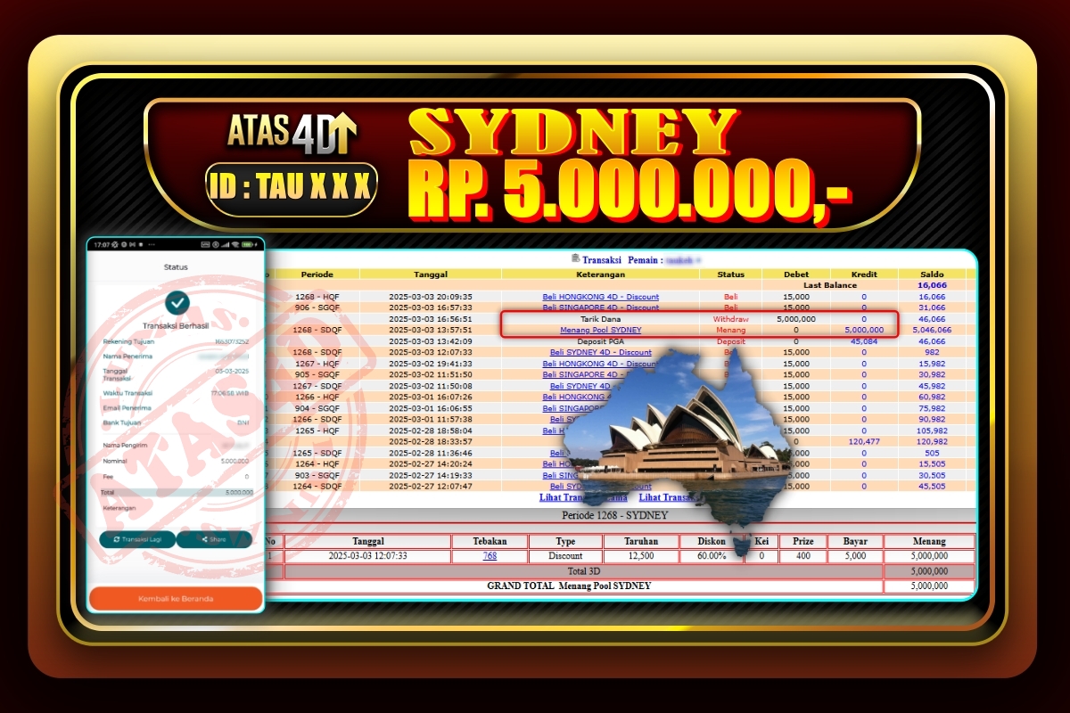 Bukti Jp ATAS4D Togel Online 03 Maret 2025 – ATAS 4D telah menjadi sebuah platform online yang selalu membayar kemenangan pemain.