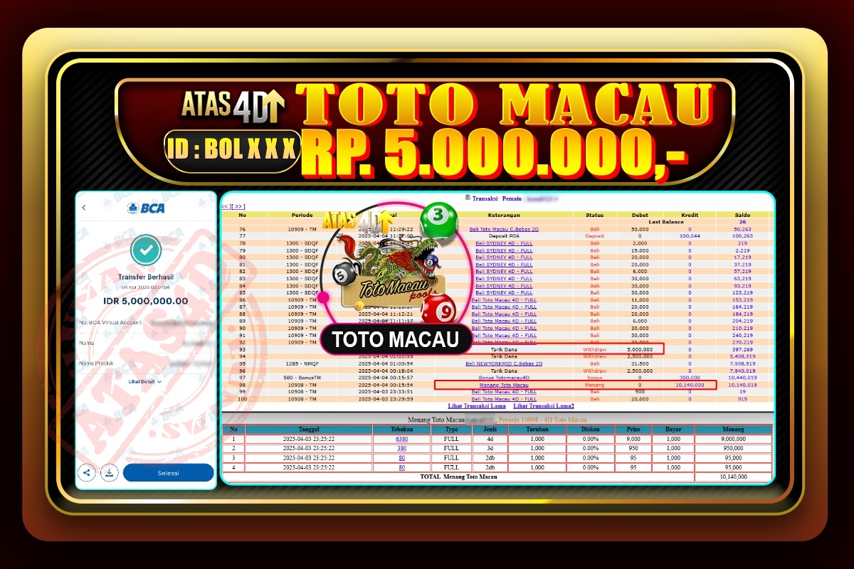 Bukti Jp ATAS4D Togel Online 04 April 2025. – ATAS 4D telah menjadi sebuah platform online yang selalu membayar kemenangan pemain.