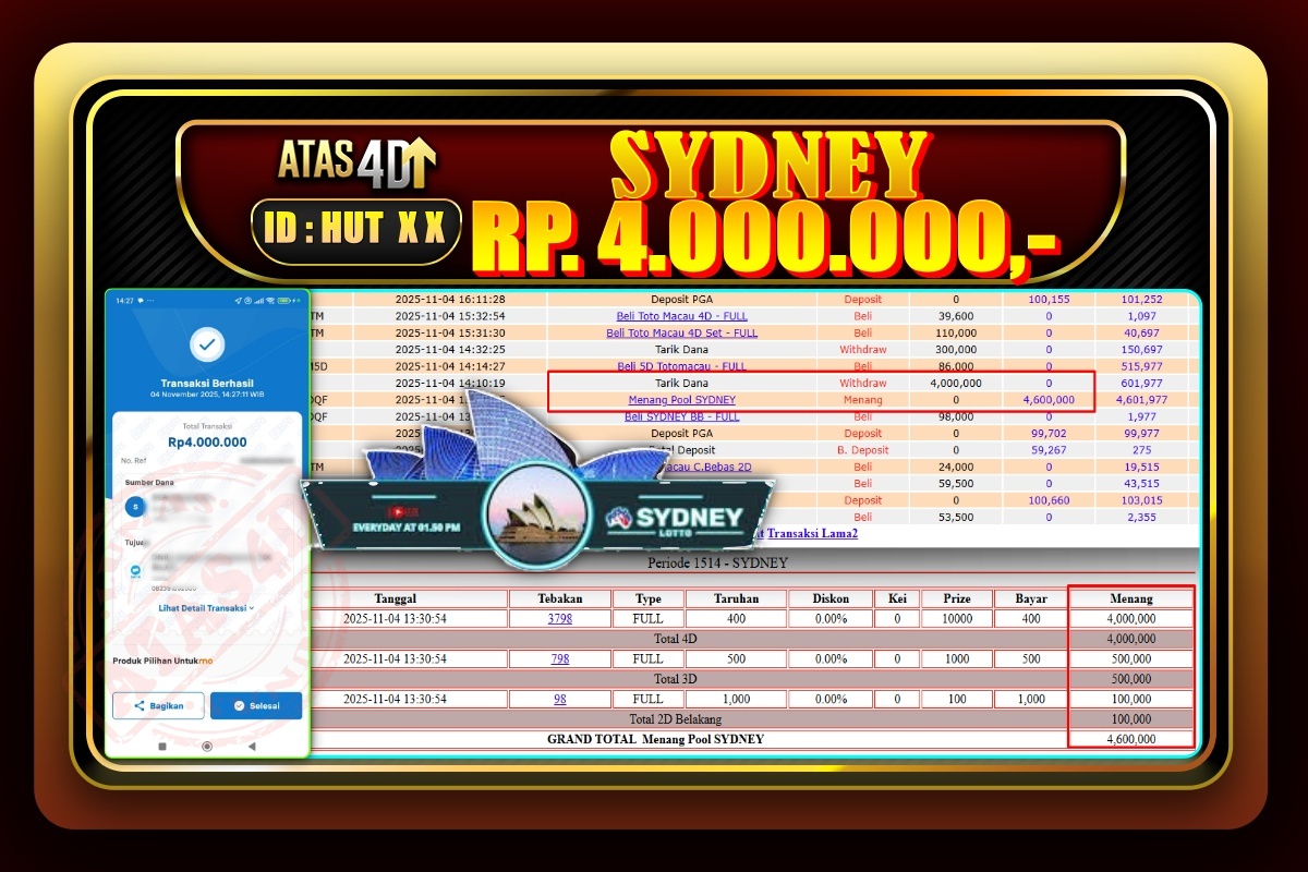 Bukti Jp ATAS4D Togel Online 04 November 2025. – ATAS 4D telah menjadi sebuah platform online yang selalu membayar kemenangan pemain