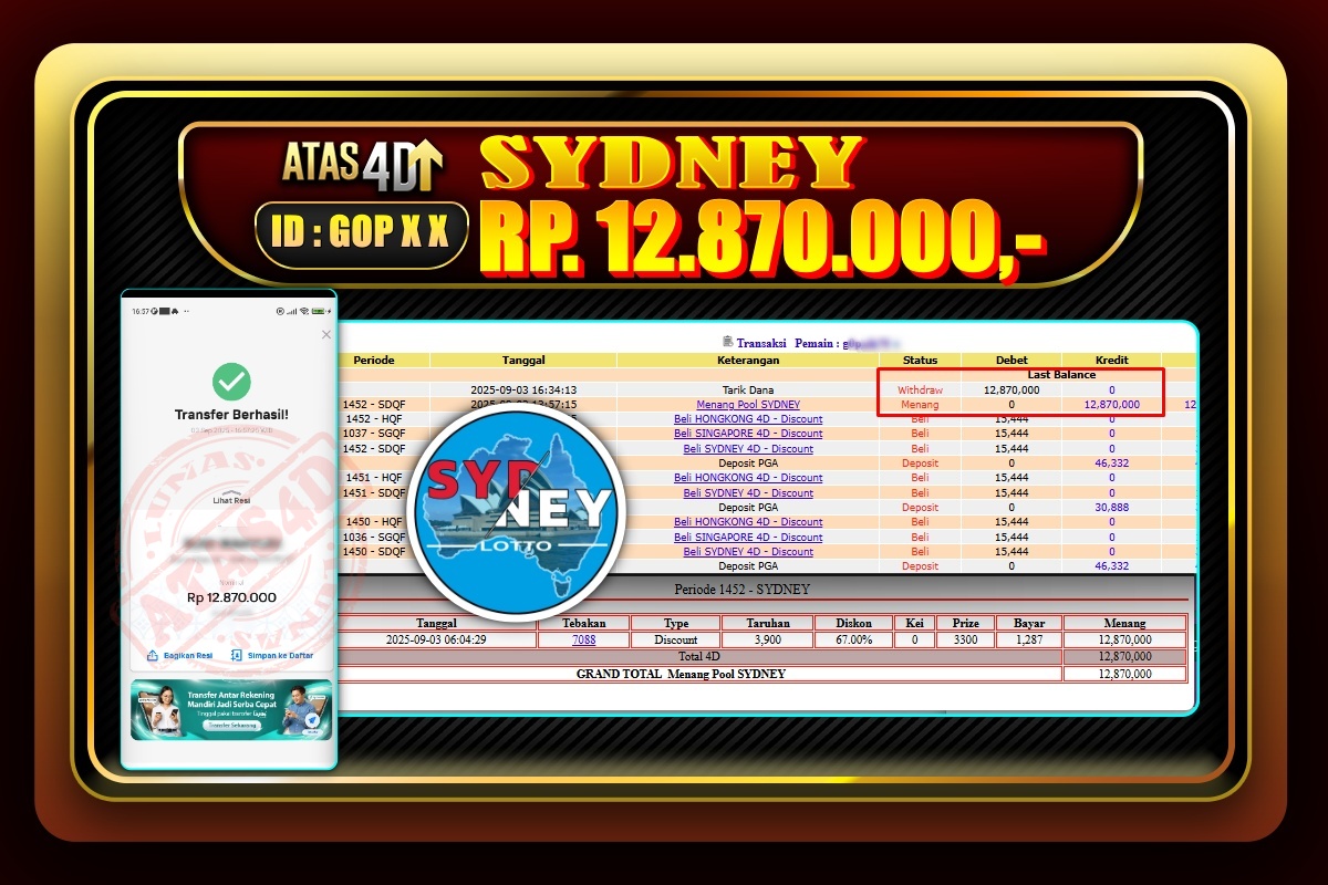 Bukti Jp ATAS4D Togel Online 04 September 2025. – ATAS 4D telah menjadi sebuah platform online yang selalu membayar kemenangan pemain