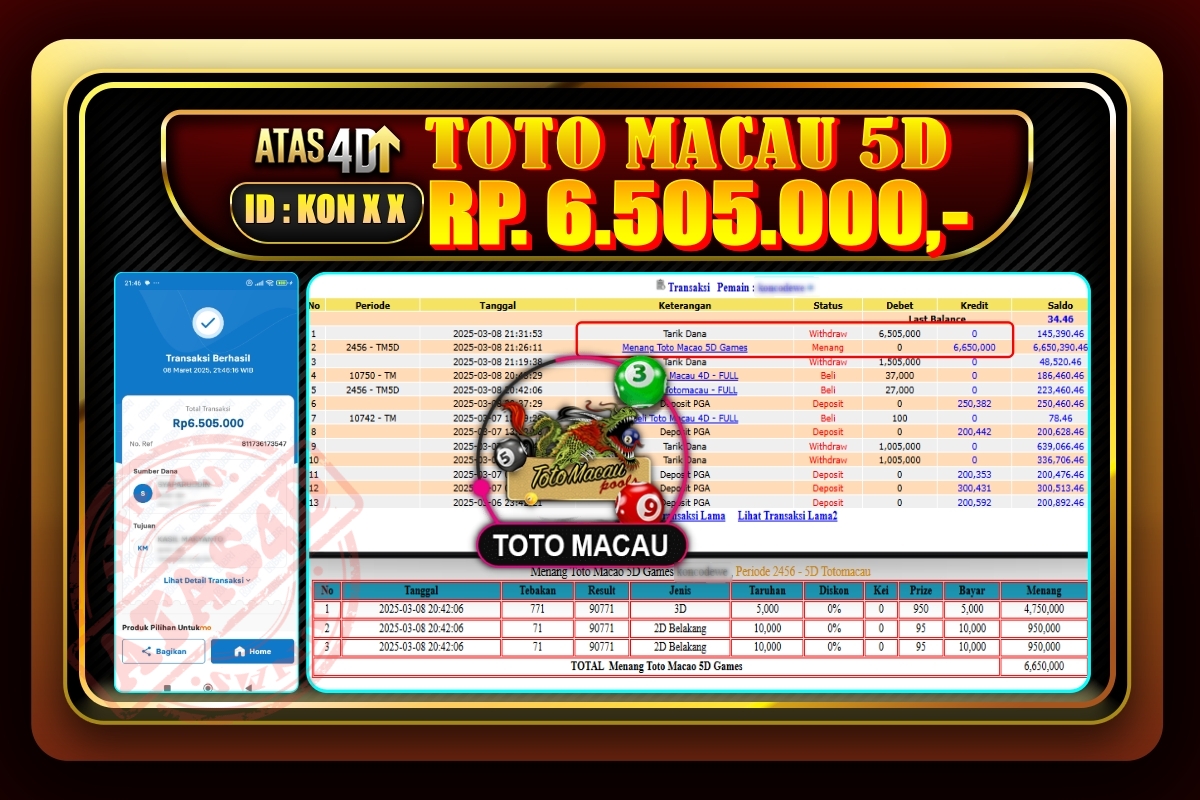 Bukti Jp ATAS4D Togel Online 08 Maret 2025 – ATAS 4D telah menjadi sebuah platform online yang selalu membayar kemenangan pemain.