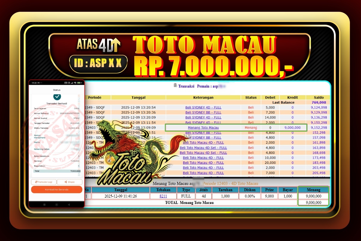 Bukti Jp ATAS4D Togel Online 09 Desember 2025.