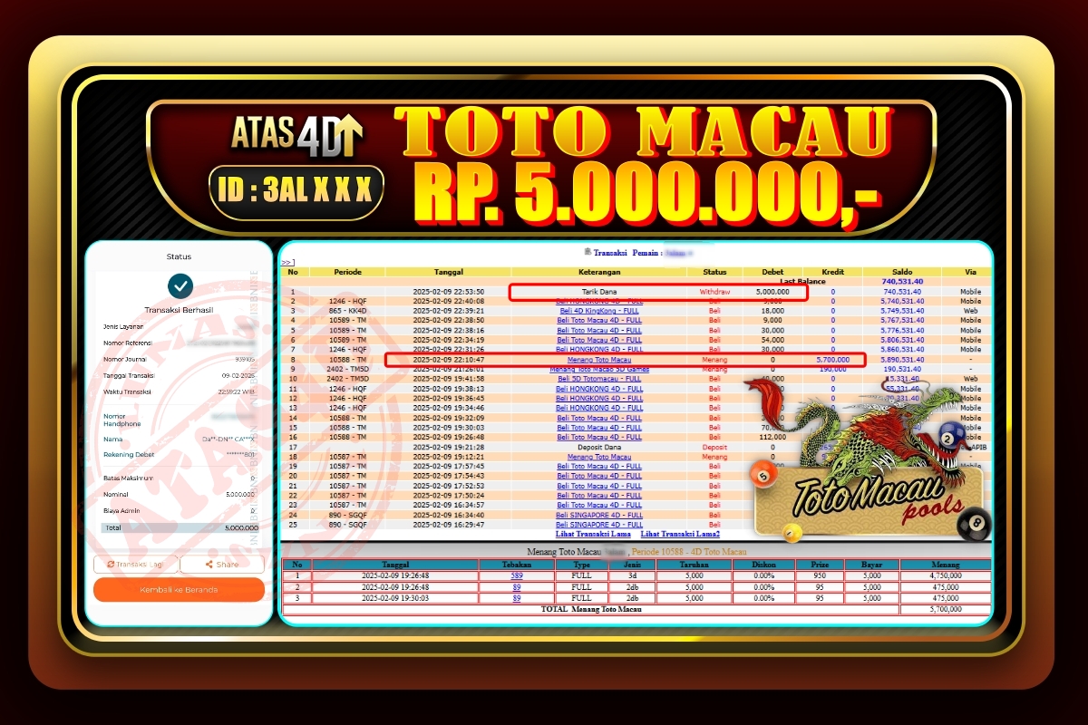 Bukti Jp ATAS4D Togel Online 09 Februari 2025 – ATAS 4D telah menjadi sebuah platform online yang selalu membayar kemenangan pemain.