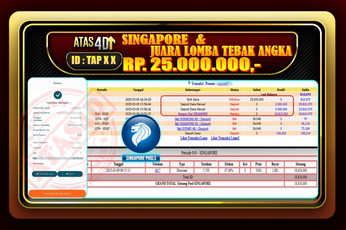 Bukti Jp ATAS4D Togel Online 09 Maret 2025 – ATAS 4D telah menjadi sebuah platform online yang selalu membayar kemenangan pemain.