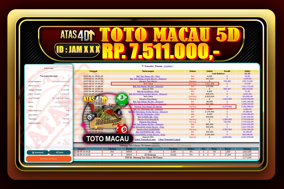 Bukti Jp ATAS4D Togel Online 10 Juni 2025. – ATAS 4D telah menjadi sebuah platform online yang selalu membayar kemenangan pemain