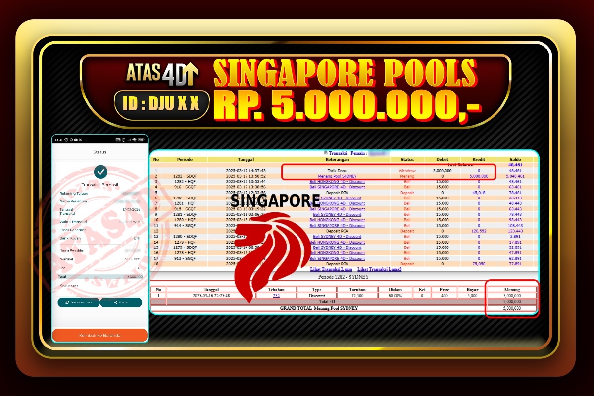 Bukti Jp ATAS4D Togel Online 17 Maret 2025 – ATAS 4D telah menjadi sebuah platform online yang selalu membayar kemenangan pemain.
