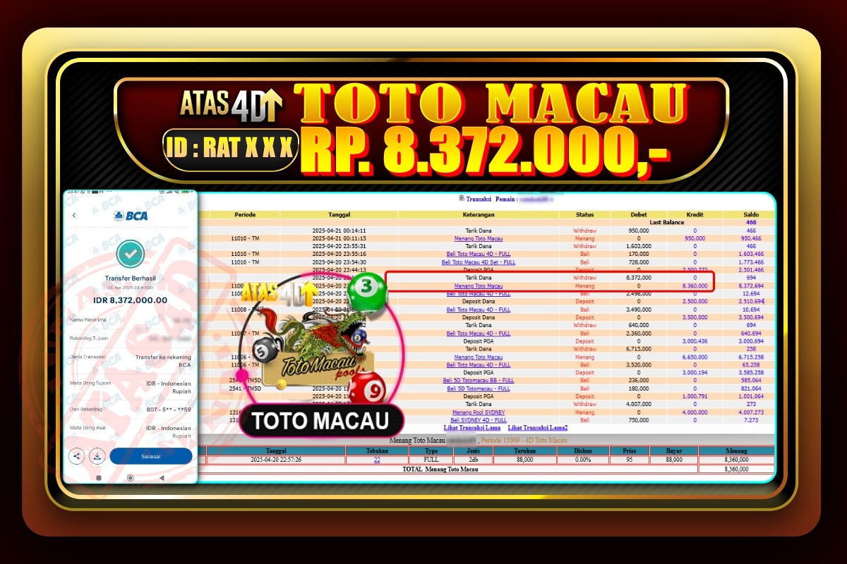 Bukti Jp ATAS4D Togel Online 20 April 2025. – ATAS 4D telah menjadi sebuah platform online yang selalu membayar kemenangan pemain