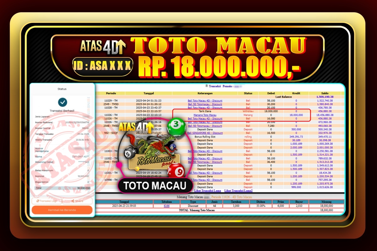 Bukti Jp ATAS4D Togel Online 23 April 2025. – ATAS 4D telah menjadi sebuah platform online yang selalu membayar kemenangan pemain