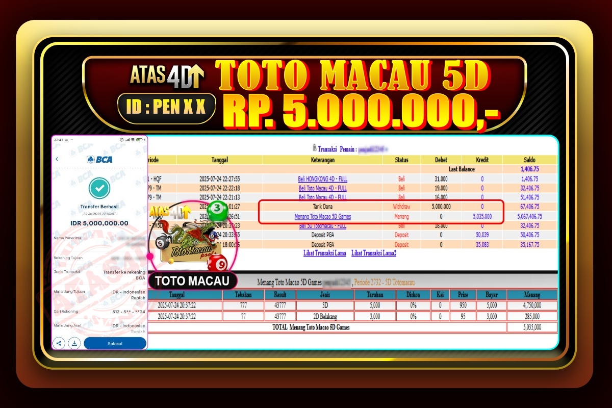 Bukti Jp ATAS4D Togel Online 24 Juli 2025. – ATAS 4D telah menjadi sebuah platform online yang selalu membayar kemenangan pemain