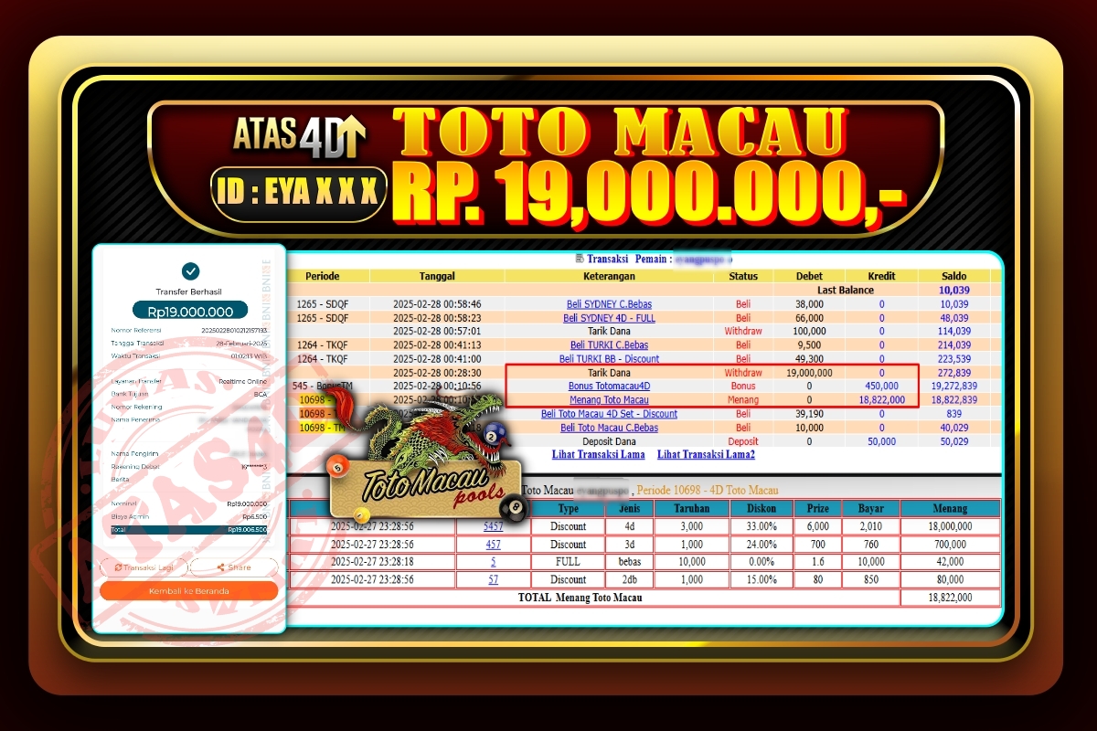 Bukti Jp ATAS4D Togel Online 28 Februari 2025. – ATAS 4D telah menjadi sebuah platform online yang selalu membayar kemenangan pemain.