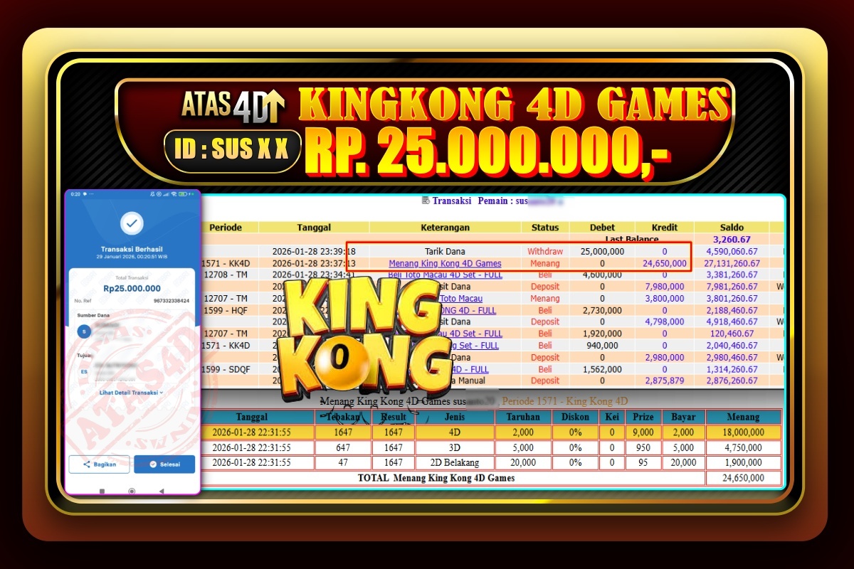 Bukti Jp ATAS4D Togel Online 29 Januari 2026  – ATAS 4D telah menjadi sebuah platform online yang selalu membayar kemenangan pemain.