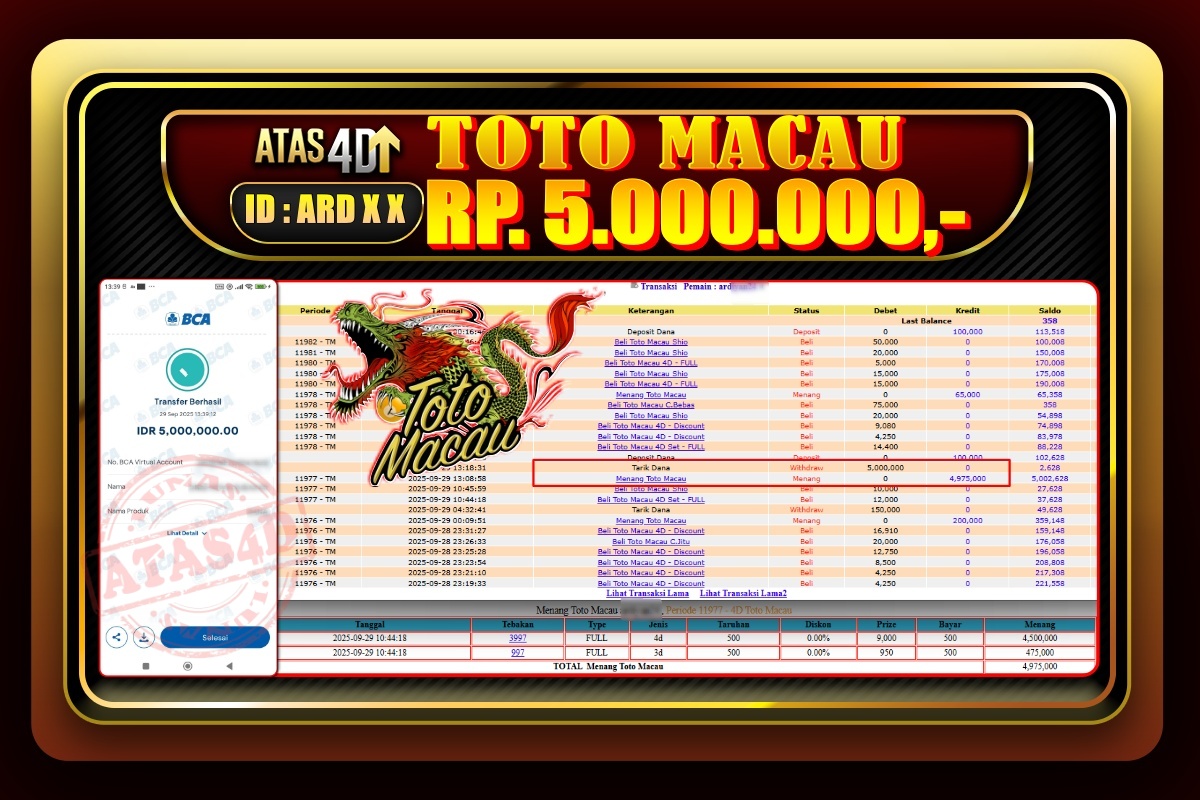 Bukti Jp ATAS4D Togel Online 29 September 2025. – ATAS 4D telah menjadi sebuah platform online yang selalu membayar kemenangan pemain