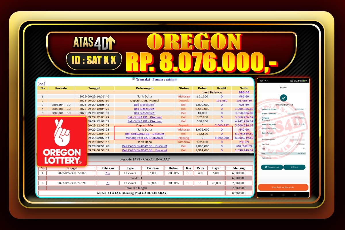 Bukti Jp ATAS4D Togel Online 29 September 2025. – ATAS 4D telah menjadi sebuah platform online yang selalu membayar kemenangan pemain