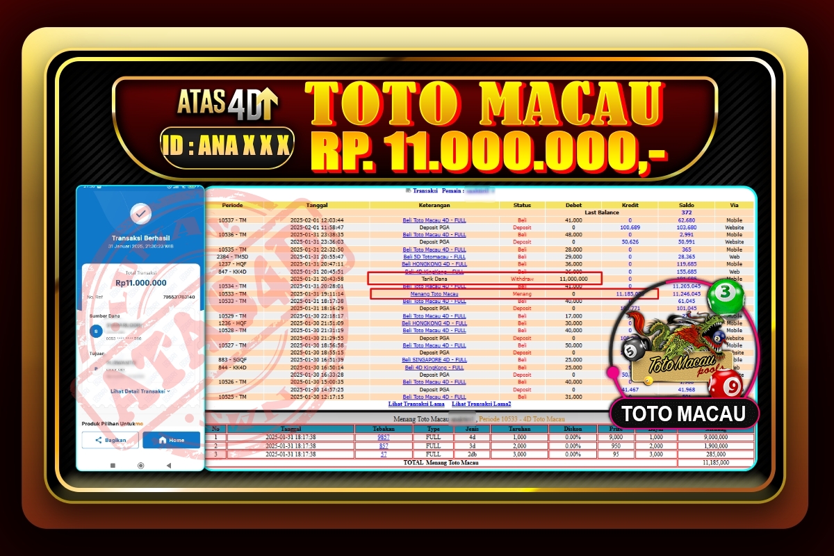 Bukti Jp ATAS4D Togel Online 31 Januari 2025– – ATAS 4D telah menjadi sebuah platform online yang selalu membayar kemenangan pemain.