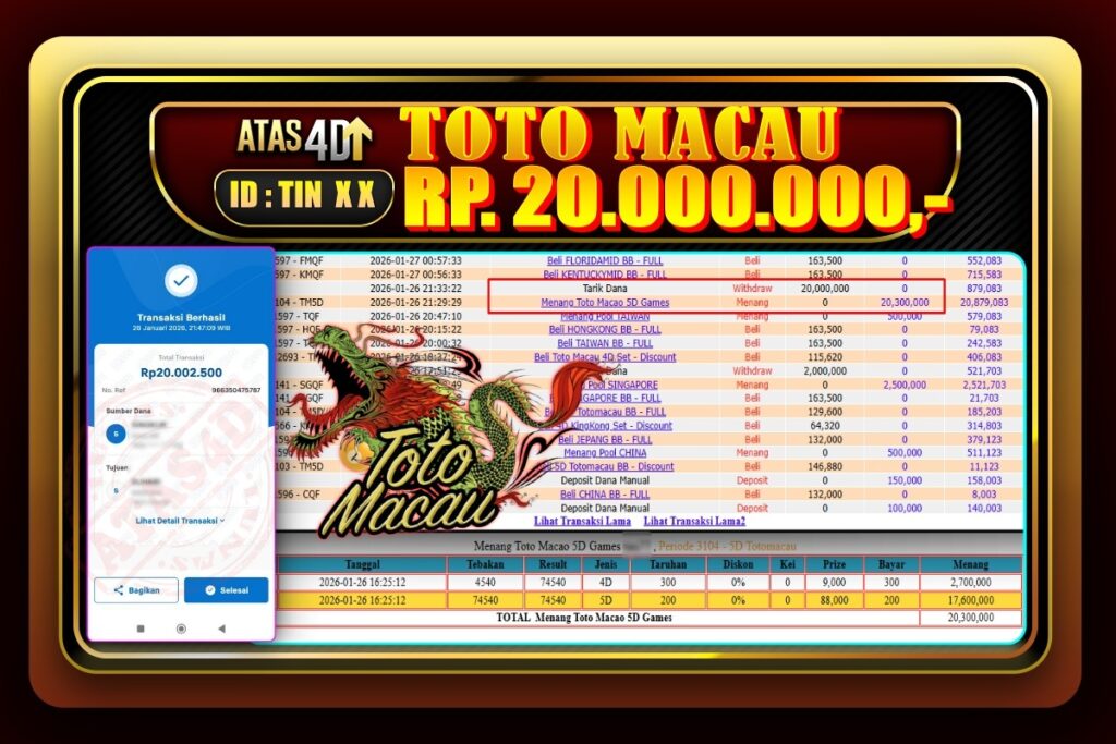 Bukti Jp ATAS4D Togel Online 26 Januari 2026 – ATAS 4D telah menjadi sebuah platform online yang selalu membayar