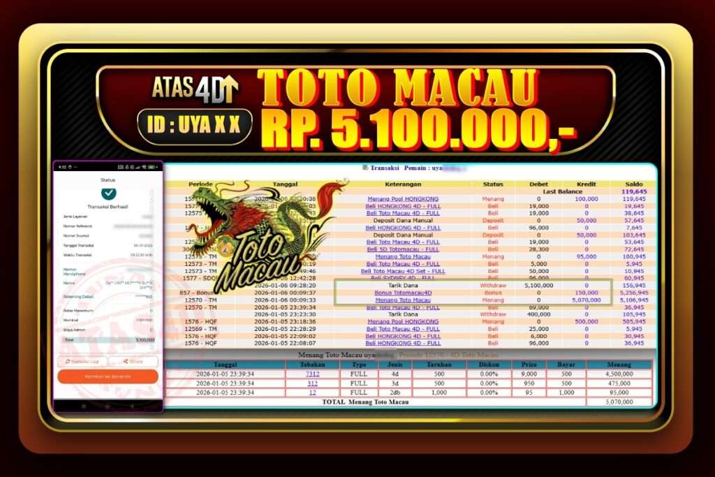 Bukti Jp ATAS4D Togel Online 05 Januari 2026. – ATAS 4D telah menjadi sebuah platform online yang selalu membayar kemenangan