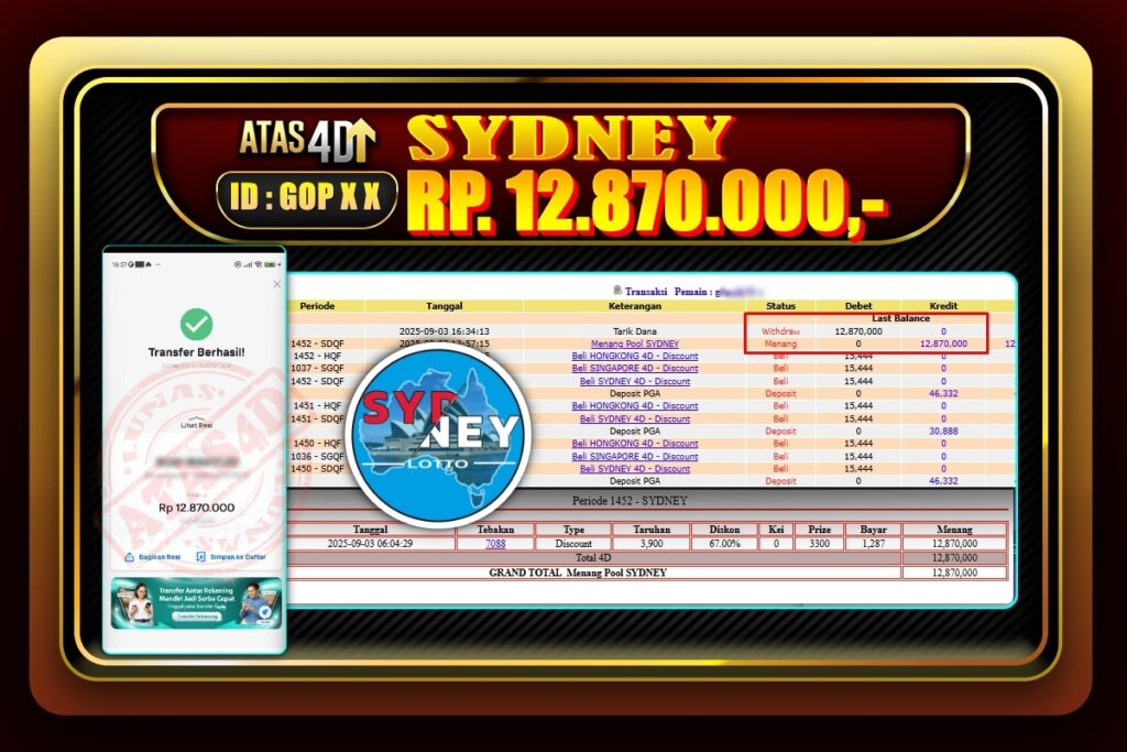Bukti Jp ATAS4D Togel Online 03 September 2025. – ATAS 4D telah menjadi sebuah platform online yang selalu membayar kemenangan