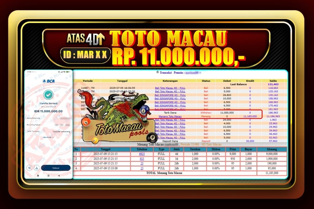 Bukti Jp ATAS4D Slot Online 08 Juli 2025. – ATAS 4D telah menjadi sebuah platform online yang selalu membayar kemenangan