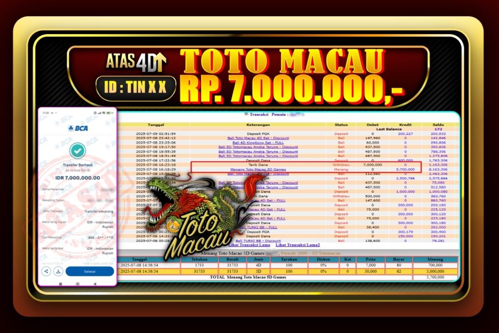 Bukti Jp ATAS4D Slot Online 07 Juli 2025. – ATAS 4D telah menjadi sebuah platform online yang selalu membayar kemenangan