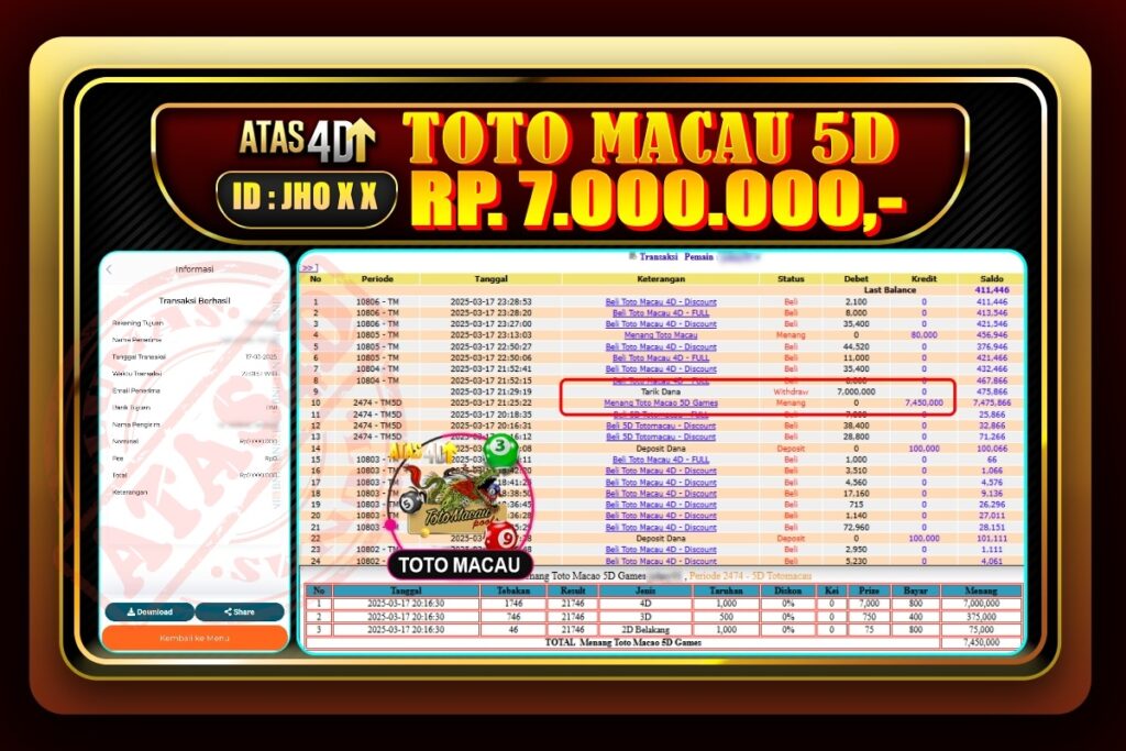 Bukti Jp ATAS4D Togel Online 20 Maret 2025. – ATAS 4D telah menjadi sebuah platform online yang selalu membayar kemenangan